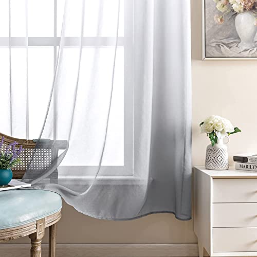 CUTEWIND Tende per Interni Voile Trasparenti Sfumato Verticale con Occhielli Grigio Tende Leggero per Finestra Balcone Camera da Letto Soggiorno Moderno Cameretta Bambini 2 Pezzi 140x160cm