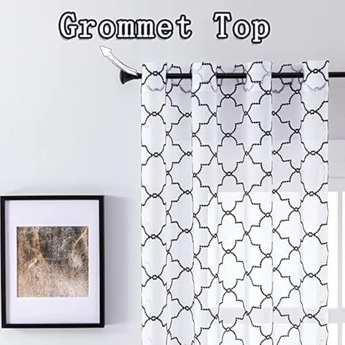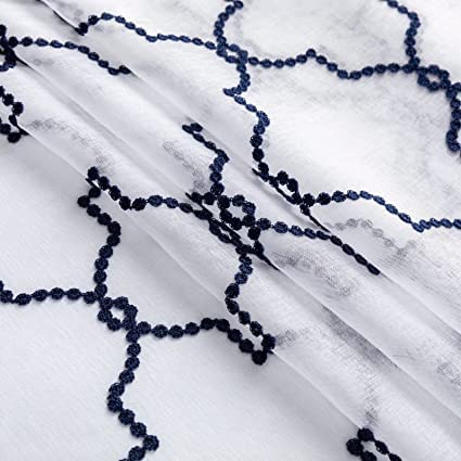 CONFEZIONE: ogni confezione contiene 2 pannelli di tende semitrasparenti in voile, bianco di sfondo con ricamo decorativo blu, ogni pannello misura 140x145cm (larghezza e lunghezza) con 8 annelli d'acciaio.