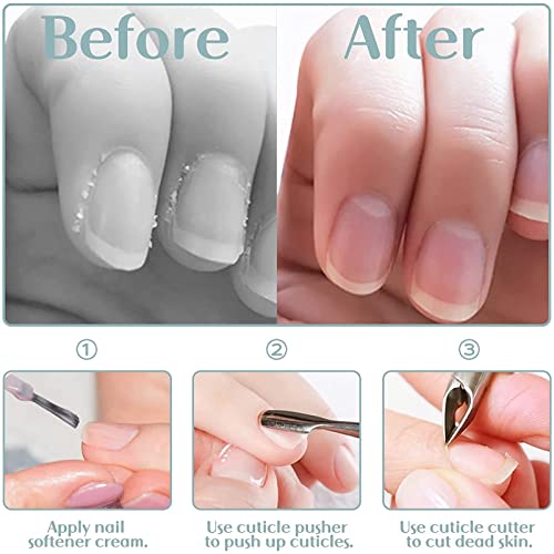 【Pieno Funzionamento】Riceverai 1 taglia cuticole, 2 spingi cuticole con diverse funzioni, Con questi articoli, potete spingere e rimuovere gli strati morti della pelle senza danneggiare l'unghia.Indispensabile per semplice manicure o pedicure.
