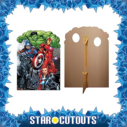 Star Cutouts Ltd- The SC814 Avengers Assemble Child Size Cardboard Stand in Official Marvel Superhero Party from Star Cutouts 130cm Tall, Multicolore