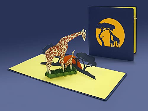 CUTPOPUP Giraffe - Biglietto di auguri pop-up per famiglia di giraffe, biglietto di compleanno pop-up, biglietti d'auguri 3d compleanno, nipote, figlio biglietto pop-up IT