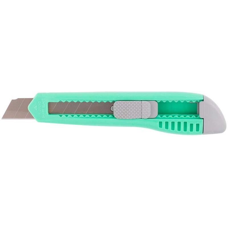 Lama per tagliare in modo sicuro carta, cartone e pellicola. Appartiene alle attrezzature di base per il lavoro in magazzino e nei negozi all'ingrosso e viene utilizzato per lavori di montaggio e fai da te. Blocco automatico della lama per una maggiore sicurezza durante l'uso. Il corpo ergonomico in plastica infrangibile garantisce una presa sicura.