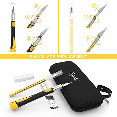 Cutter di Precisione-AdattoPer Arte,Hobby, Album e Sculture,Ecc, Contiene 2 Taglierino,20 Lama,Scatola di Immagazzinaggio EVA,Righello,Pietra Per Affilare,Panno di Velluto di Cervo