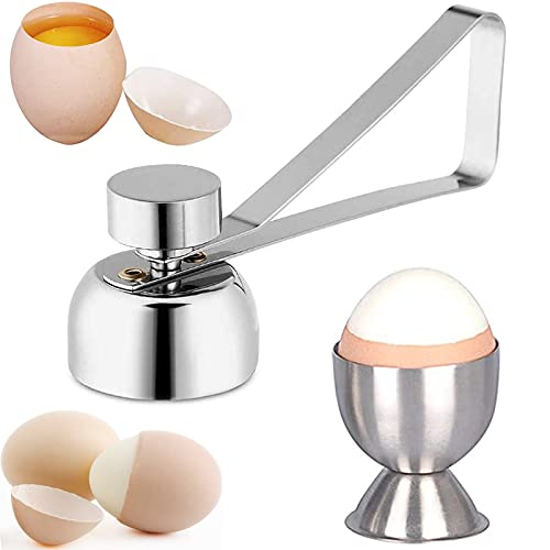Egg Cutter Rompi Guscio Per Uova Acciaio Inox Rimuovere la Cima Delle Uova Bollito Grezzo Egg Open Tool Egg Cutter Shell Opener con 1 Portauovo per Rigida e Morbida Uova Sode