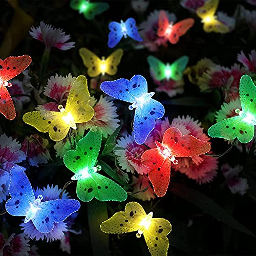 Cuzile Esterno luci da Giardino 20 Luce Solare Impermeabile luci ad energia Solare a Forma di Farfalla in Fibra Ottica per Natale Albero casa Vacanza recinto Patio Party Decorazione