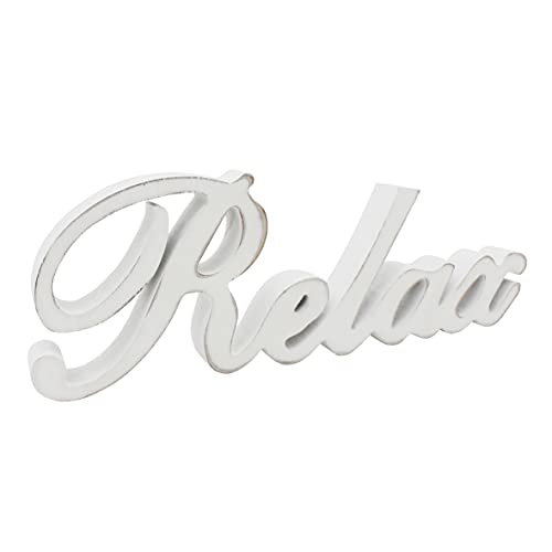 CVHOMEDECO. Cartello rustico vintage con parole in legno bianco invecchiato "Relax" da tavolo/mensola/parete di casa o ufficio decorazione artistica, 30 x 10 cm x 10 cm