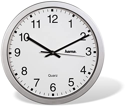 Hama CWA100 Orologio da Parete in Quarzo Cerchio Argento, Bianco