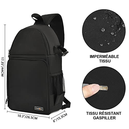 【 Fotocamera e accessori di stoccaggio 】 Dimensioni: 10,3 x 6 x 17,35 pollici (L x P x A), si adatta a 1 fotocamera 3 obiettivi treppiede e accessori. Design con cerniera sulla parte anteriore e laterale per un rapido accesso alla fotocamera e alle lenti, la tasca superiore con cerniera per riporre le tue necessità quotidiane. Tasca a rete elastica sull'altro lato per riporre bottiglie, una cinghia laterale per il supporto del treppiede.