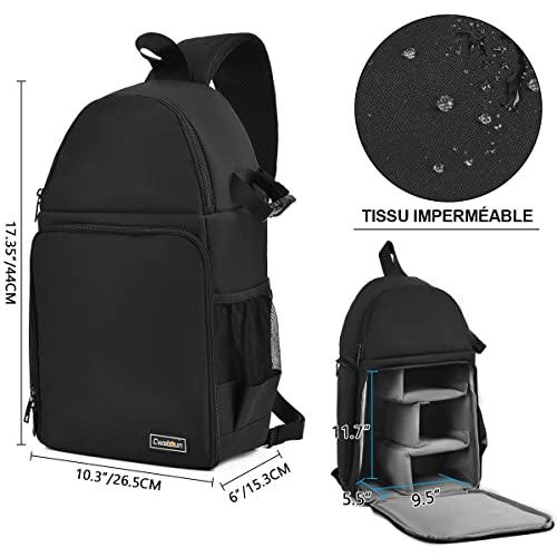 Cwatcun SLR Borsa a tracolla con supporto per treppiede, accesso laterale e inserti modulari per fotocamere mirrorless Canon Nikon Sony, 1.0 Nero