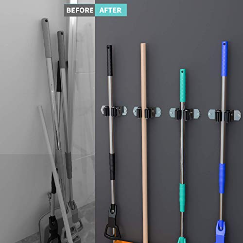 Adatto per uso interno ed esterno: il supporto per mocio è realizzato in acciaio inossidabile con design impermeabile, i ganci da parete CWOVRS sono ideali per tenere in ordine mocio, scope, paletta, strumenti di pulizia, attrezzi da giardino, ombrelli, ecc. Per interni ed esterni