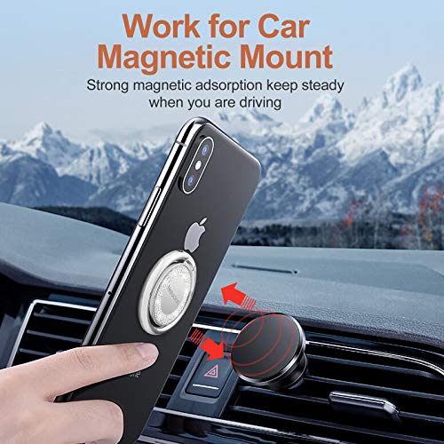 CXMALL - Supporto ad anello per cellulare con brillantini, rotazione a 360°, supporto magnetico per auto, compatibile con tutti gli smartphone (argento)