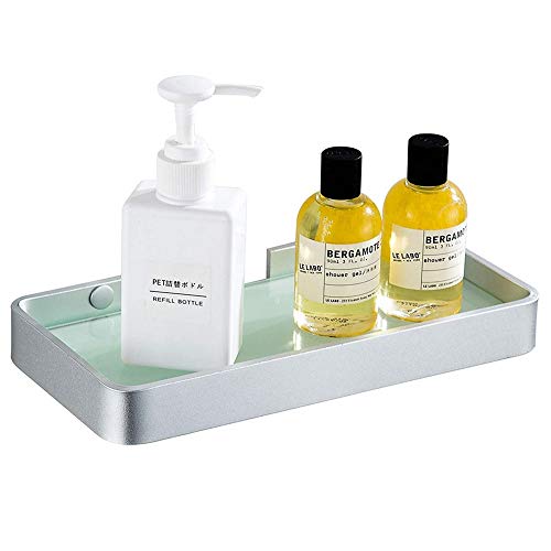 Cxssxling Mensola Doccia Senza Foratura Autoadesivo Acciaio Inox Mensole Bagno Mensole in Vetro Temperato Rettangolare Organizer Portaoggetti per Accessori da Cucina e Bagno 35 * 12 * 3 CM