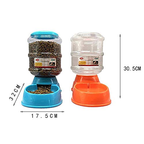 Cxssxling 3.5L x 2 Pezzi Dispenser Cibo Cani Alimentatore Automatico per Pet Dispenser Automatico Cibo Acqua, Conservatore di Cibo e Acqua (Blu+Arancione)