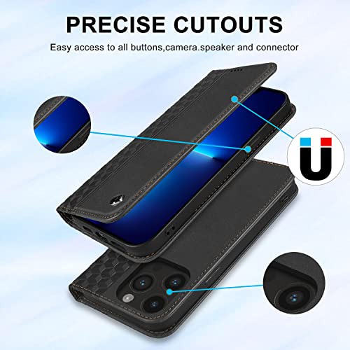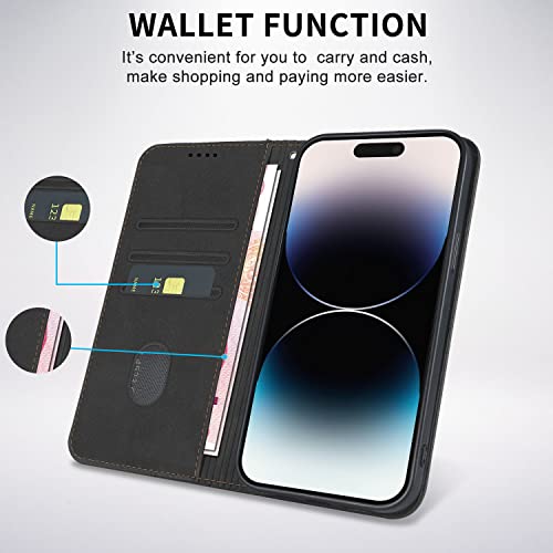 CXTcase Cover iPhone 14 Pro, PU Pelle Custodia per iPhone 14 Pro [Kickstand] [Slot per Schede], Portafoglio Custodia Flip Case per iPhone 14 Pro, Nero