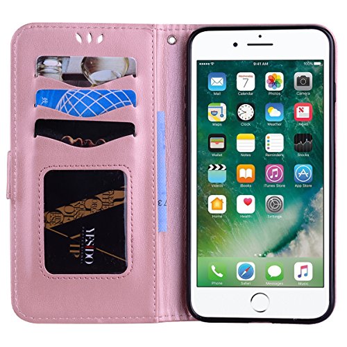 CXTcase Custodia iPhone 7 Plus, Cover iPhone 8 Plus Flip Protettiva di Premia PU Portafoglio Pelle da Portafoglio per Apple iPhone 7/8 Plus Unicorni Glitter Oro Rosa