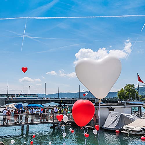 PACCHETTO DI PALLONCINI INCLUSO: Riceverai 25 palloncini a cuore rosso, 25 palloncini a cuore bianchi, 1 rotolo di nastro rosso e 1 rotolo di nastro bianco. Il numero è sufficiente e i nastri abbinati dello stesso colore renderanno il palloncino più delicato e bello.