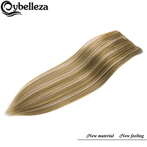 Cybelleza Extension Clip Capelli Lisci 60cm 8 Fasce Estensioni per Capelli Sintetici Lunghi Finti Allugamento Effetto Naturale Dritti Full Head Set Posticci per Donna (Biondo scuro & Biondo)