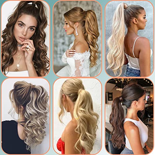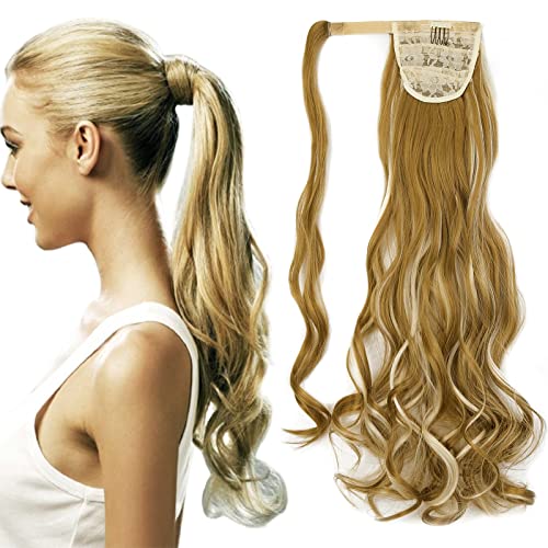 Cybelleza Posticci per capelli Extension Coda Capelli Clip Coda di Cavallo Capelli 60cm 130g Ricci Mossi Sintetici Lunghi Ponytail Effetto Naturale Wrap Around (Bionda scura&bionda candeggina)