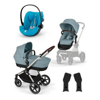 Dettagli prodotto passeggino: Età: dalla nascita a circa 4 anni Passeggino 2 in 1 con navicella e seggiolino intercambiabile Ruote per tutti i terreni Ruote antiforatura e ruote anteriori bloccabili A partire dall'età della seduta, la navicella diventa un sedile sportivo Utilizzabile come sistema da viaggio con il seggiolino auto Cybex (disponibile come accessorio) Unità di seduta reversibile (può essere utilizzata in avanti e indietro) Tettuccio parasole XXL con inserto in rete e tessuto UFP50+ che protegge dalle intemperie e dal sole Schienale ergonomico regolabile con una sola mano - regolabile fino alla posizione reclinabile Dettagli sul prodotto Seggiolino auto per neonati: Utilizzabile dalla nascita a circa 24 mesi, fino a un massimo di 13 kg, da 40 a 87 cm di altezza. Facile da salire e scendere e comodo da portare in braccio I pannelli di ventilazione garantiscono un'ampia circolazione dell'aria La cappottina retrattile UPF50+ e XXL offre un'eccellente protezione dalle intemperie. Poggiatesta regolabile in altezza Inserto rimovibile per neonati Metodo di fissaggio del bambino/neonato: imbracatura a 3 punti Opzioni di installazione in auto: Base station Base G o cintura di sicurezza del veicolo Installazione: in senso contrario alla marcia Dimensioni e peso: Dimensioni da montato (lunghezza x larghezza x altezza): 85-95 x 61 x 11,6 cm Dimensioni ripiegato (lunghezza x larghezza x altezza): 40 x 51 x 92 cm Peso del prodotto: 11,6 kg Capacità di carico: 22 kg Dimensioni (lunghezza x larghezza x altezza): 64,5 - 72 x 43,5 x 35,5 - 59,5 cm Peso del prodotto: 3,9 kg Compatibilità: seggiolino auto cybex (Cloud Z2, Cloud T) Seggiolino auto per neonati Eos Lux Adapter parapioggia Eos Lux La fornitura comprende Telaio Eos Lux con ruote Navicella comprensiva di telaio e unità di seduta come copertura Cestino per la spesa Barra giochi Capottina parasole cybex GOLD Seggiolino auto Cloud G i-Size Plus cybex GOLD Adapter EOS Lux Manuale d'istruzioni
