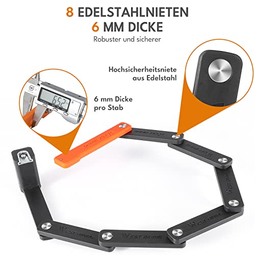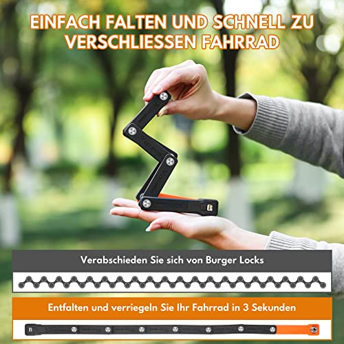 Mini lucchetto pieghevole per bicicletta: il lucchetto per bicicletta rivoluzionato e consolidato un nuovo lucchetto, mini lucchetto pieghevole, alta sicurezza con una lunghezza di 63 cm. Il peso leggero (531 g) sotto il lucchetto e lo scooter. Con livello di sicurezza, le serrature per bicicletta offrono una buona protezione in caso di rischio di furto basso o medio. Flessibilità con peso ridotto e design compatto. Grazie al piccolo formato della serratura pieghevole si può riporre in qualsiasi tasca