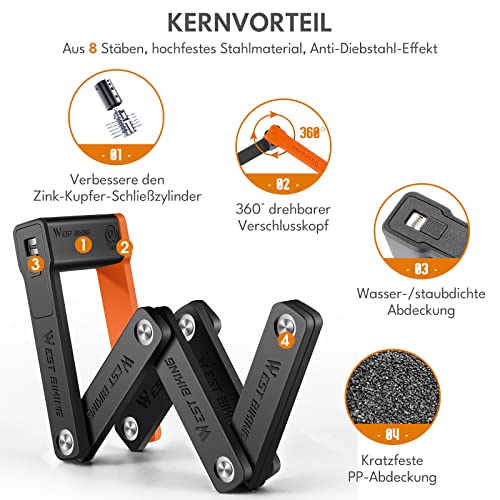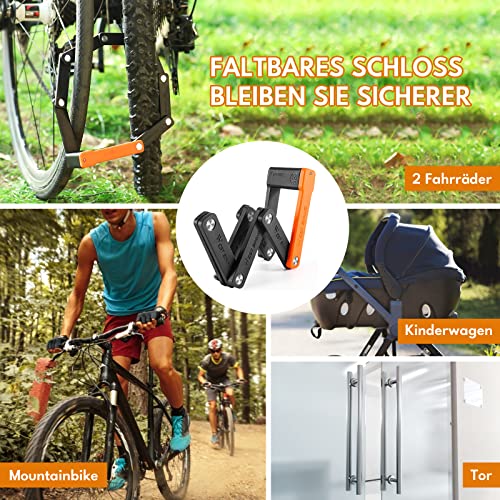 Lucchetto per bicicletta con chiave: 2 chiavi robuste consentono di utilizzare in modo sicuro anche al buio e in condizioni di scarsa illuminazione. Il lucchetto pieghevole per bicicletta assicura che il lucchetto sia sempre a portata di mano, salvaspazio, disponibi