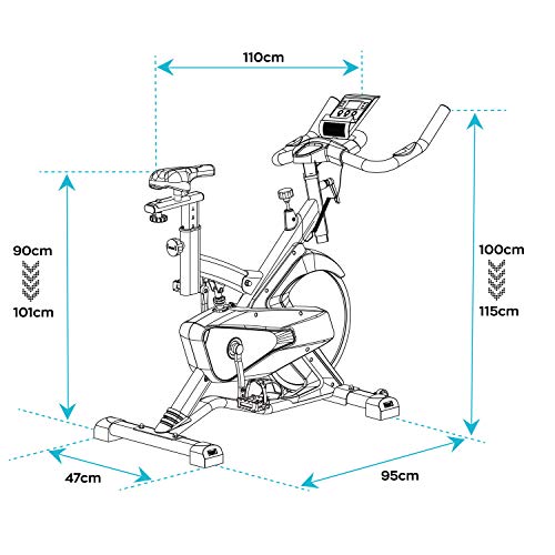 BOLD 1600 - Cyclette da corsa professionale con volano da 16 kg, display LCD, software di monitoraggio e supporto tablet Cyclette da fitness Whirling bike Professional Running bike (BOLD 1600)