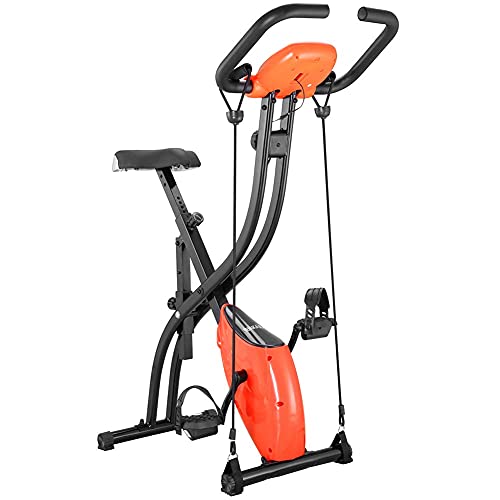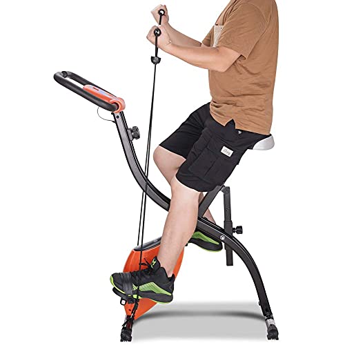 Cyclette Pieghevole con elastici Bici per allenamento Fitness Cardio Bike Spinning con sediolino regolabile - display LCD- Manubri antiscivoli