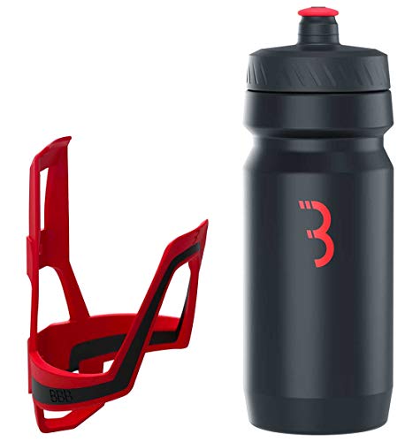 BBB Cycling - Borraccia per bici DualCage Comptank - Combinazione universale per bicicletta - Borraccia leggera e a prova di perdite - 550 ml - Nero, Rosso
