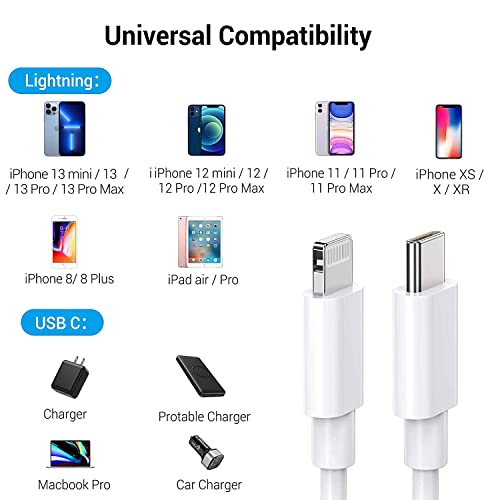 【Ampia compatibilità】per dispositivi Lightning, inclusi iPhone 14/14 Plus/14 Pro/14Pro Max/13/13 mini/13 Pro/13Pro Max/12/12 mini/12Pro/12 Pro Max /11/X/XS/XR/8 Plus/AirPods Pro.Per dispositivi USB C, inclusi caricabatterie USB C, caricabatterie da auto USB C e altro.