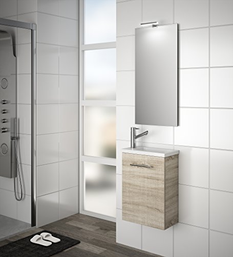 Cygnus Mini Bath - Mobiletto bagno sospeso, 1 porta con chiusura progressiva, colore: Brillo lacado - Beige