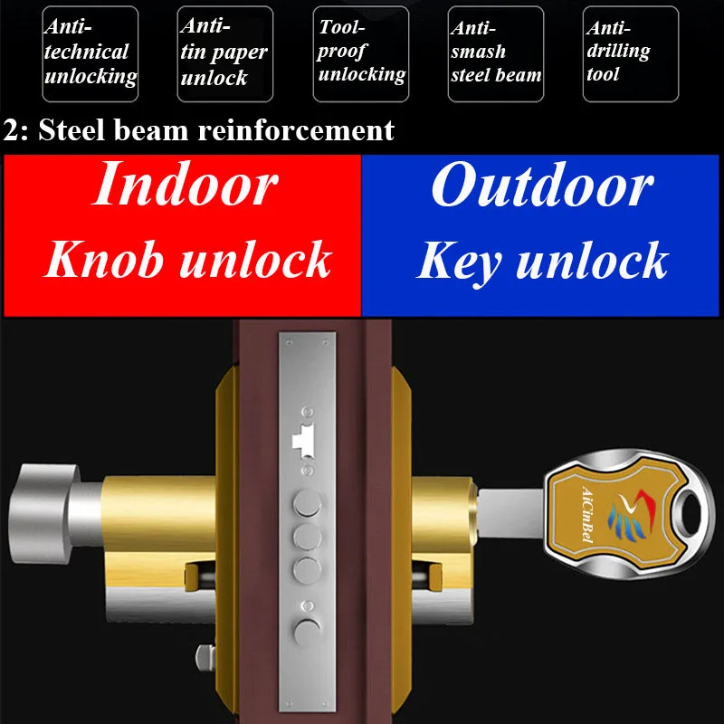 Door cylinder 60 65 70 75 80 85 90mm Security Copper Lock Cylinder Interior Bedroom Living Handle Brass Locking Security door