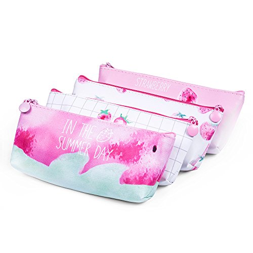 Cymax Bella fragola confezione da 4 pezzi impermeabile astuccio portapenne o sacchetto cosmetico borsa per trucco o portamonete