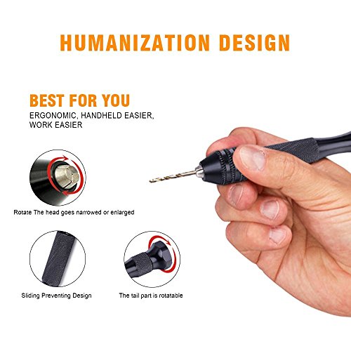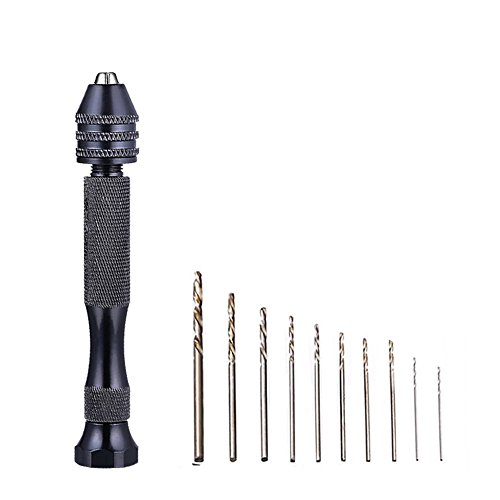 Cymax 11 pezzi punta elicoidale per trapano Hand drill Precision pin Vise Hand drill set mini micro aluminum Hand drill Rotary Tools Perfect for Model resina gioielli noce ambra cera d' api olive Nutblack