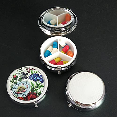 Cymeosh 3 pezzi Scatola Portapillole Rotonda Metallo, Portatile Portapillole 3 Scomparti con Specchio, Vintage Portapillole Viaggi Impermeabile per Vitamine e Medicina per Uso Quotidiano