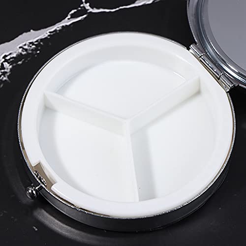 Portapillole portatile: 3 scatole rotonde. Il portapillole ha un diametro di 5 cm e uno spessore di 1,6 cm. È abbastanza piccolo da adattarsi facilmente alla tasca posteriore di una borsa, borsa da viaggio, valigetta o jeans.