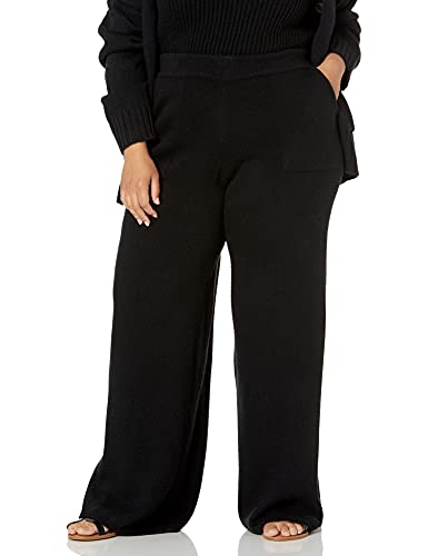 The Drop Cynthia, Pantaloni a Gamba Larga in Maglia da Donna, Nero, 5XL Plus