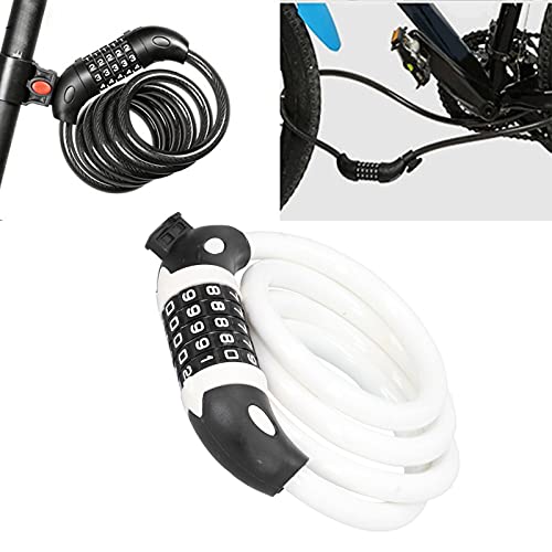 Cyrank Cavo per Lucchetto per Bici, Lucchetto per Bicicletta Portatile Lucchetto per Cavo per Bici Lucchetto per codice per Bicicletta Combinazione di Lucchetto per Bici per Bici da Moto(Bianca)