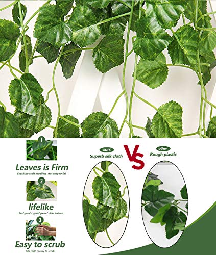 Materiale di alta qualità: queste piante artificiali sono realizzate con rami artificiali e foglie di seta. È una pianta da appendere sicura, atossica, facile da pulire, durevole e non sbiadisce. Questa pianta artificiale da appendere è ideale per la decorazione di giardini esterni o balconi interni.