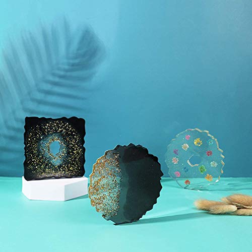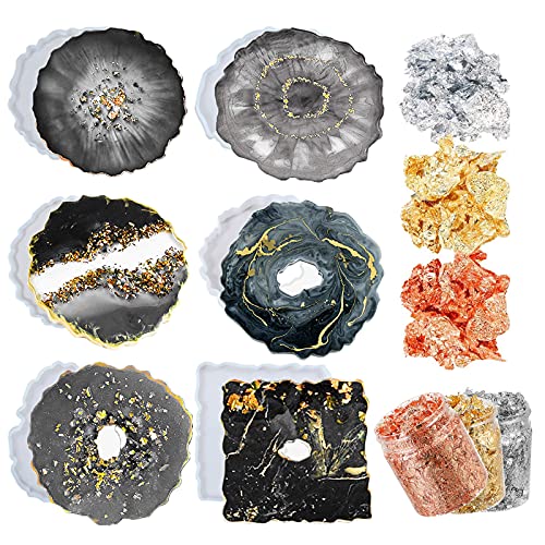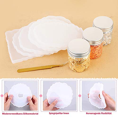 Cysincos 6 stampi in resina epossidica a forma di sottobicchiere, in silicone, irregolare, in resina epossidica, con 3 bottiglie di foglie dorate, fai da te