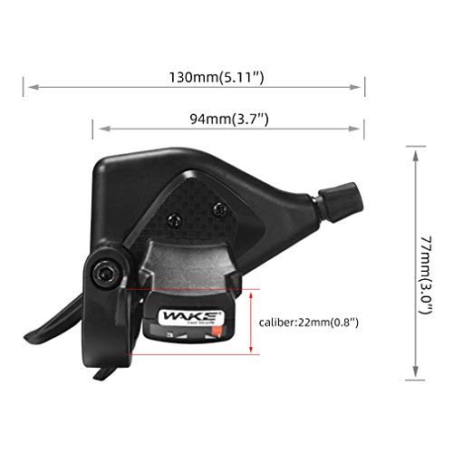 【Dimensioni del prodotto】 Lunghezza totale: 130 mm (5,11 ''), larghezza totale: 77 mm (3,0 ''), linea di spostamento sinistra: 170 mm, linea di spostamento destra: 200 mm. I cambi da ciclismo 3x8 velocità sono i tuoi accessori indispensabili per la bicicletta durante il tuo viaggio in bicicletta.