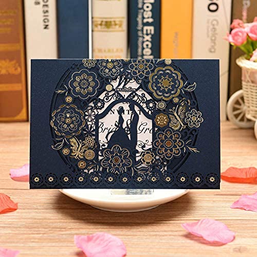 CYSKY Wedding Invitation Card 50 pezzi biglietti invito al taglio laser con carta stampabile vuota e buste per matrimonio, fidanzamento, anniversario (Blu)