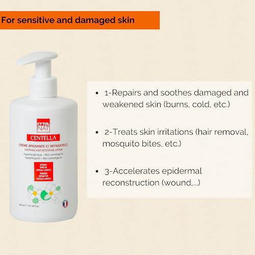 ⚡ Azione: la crema lenitiva e riparatrice CYTOLNAT CENTELLA è utilizzata per accelerare la ricostruzione della pelle danneggiata, aggredita e indebolita (sole, ustioni, freddo, inquinamento, depilazione, sapone).
