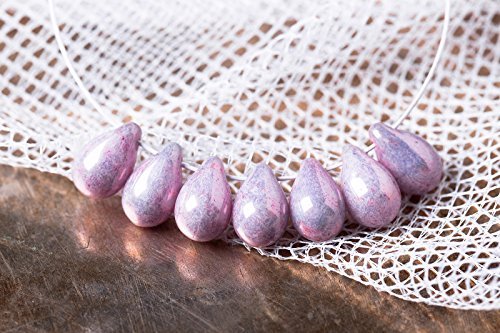 20 pz Czech Glass Smooth Teardrop Beads 9 x 6 mm - opaco marmo lavanda viola
