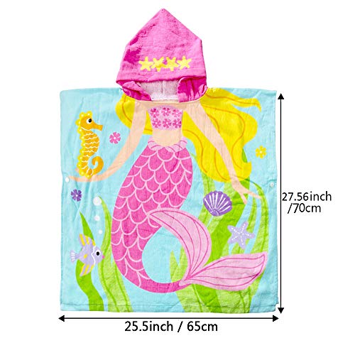 Dimensioni asciugamano poncho: 24 x 24 pollici / 27,5 x 25,5 pollici (senza cappuccio), adatto a bambini dai 2 ai 6 anni.