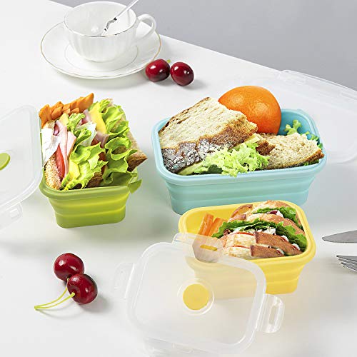 Czemo Contenitori Pieghevoli in Silicone Contenitore per Alimenti 3 PCS Scatola Bento Pieghevole,Lunch Box in Silicone, Pieghevole Cibo Contenitore, Lunch Bento Box per Forni A Microonde, Frigoriferi