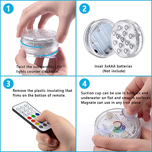 Czemo 2 Pezzi Luce Subacquea a LED, Luce Sommergibili Con RF Telecomando, 13 LEDs Luce Impermeabile RGB Piscina, per Vasi, Giardino, Acquario, Stagno, Piscina, Feste (02)