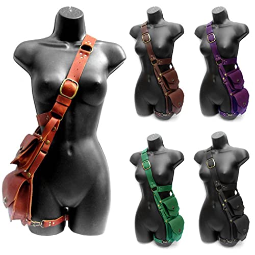 CZLABL Steampunk Gothic Leather Double Holster Bag, Vintage Antique Belt Pocket Cosplay Costume Viking Style Satchel da donna, Zaino per sport all'aria, Regalo, Verde