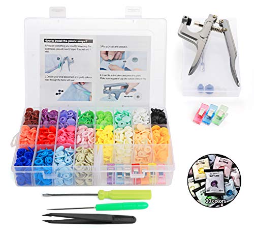 Cztech Direct 400pcs Bottoni Pressione Plastica T5 24 mm 20 Colori, pressione kit di pinza in metallo e 10pcs clip Pinze Plastica