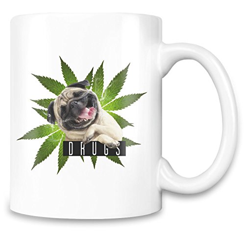 D***s Pug Weed Marijuana Cannabis Leaf Custom Printed Coffee Mug - 11 Oz - High Quality Ceramic Cup