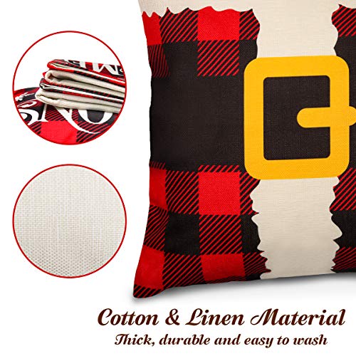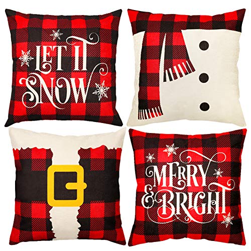 D-FantiX Set di 4 federe natalizie per cuscino, 40 x 40 cm, decorazioni natalizie, plaid in lino, federe quadrate per casa, ufficio, soggiorno, decorazione natalizia